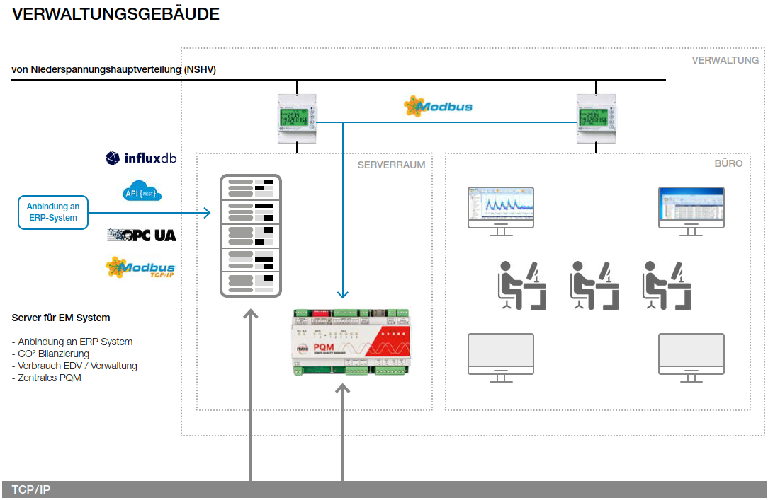Das FRAKO Energie-Management-System hilft Unternehmen ihre Energiekosten zu erfassen, zu dokumentieren und aufzubereiten. Mit Hilfe von verschiedenen Software-Werkzeugen lassen sich die Daten analysieren und mit einer Visualisierungssoftware am PC darzustellen. Die dadurch gewonnen Erkenntnisse bilden die Basis zur Optimierung der Energiekosten. Weiterhin unterstützt das FRAKO EMS Unternehmen bei der Einführung eines Managementsystems nach ISO 50001.
